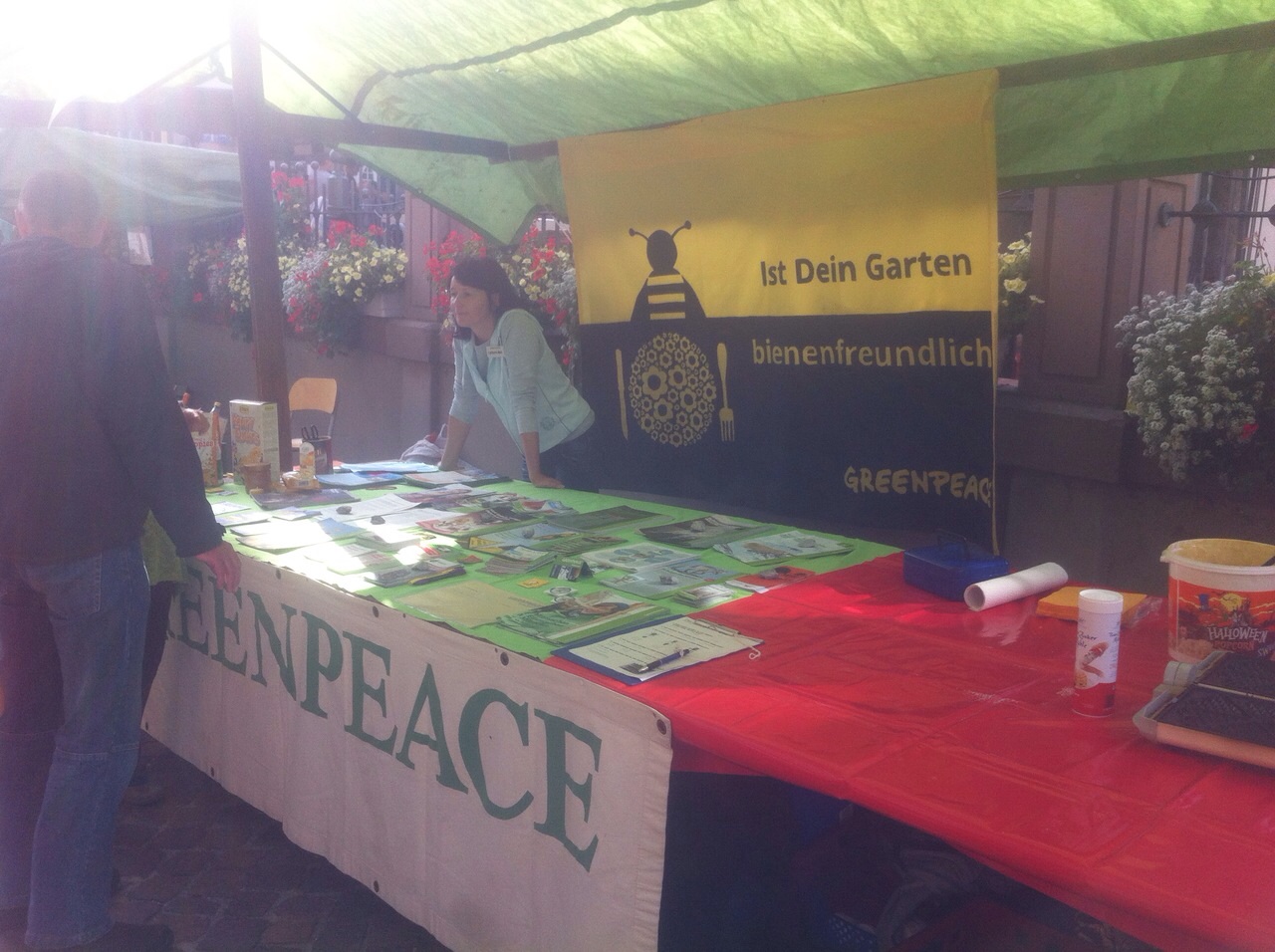 Dieses mal haben wir der Greenpeacegruppe aus Konstanz bei einem Stand auf dem Ökomarkt in Engen geholfen.